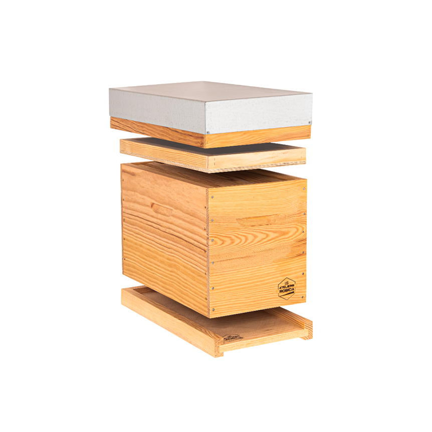 Les corps de ruche Robida sont fabriqués dans nos ateliers de Port-Brillet, en Mayenne, à partir de bois issu de forêts locales, qui leur confère une durabilité maximale. Ils sont assemblés à tenons ou mi-bois. Chaque corps est livré avec crémaillères et bandes intercadres.