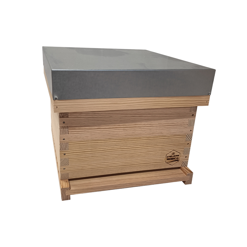 • Corps Dadant, fabriqué en pin maritime issu de forêts locales, durabilité maximale. Assemblage à tenons.